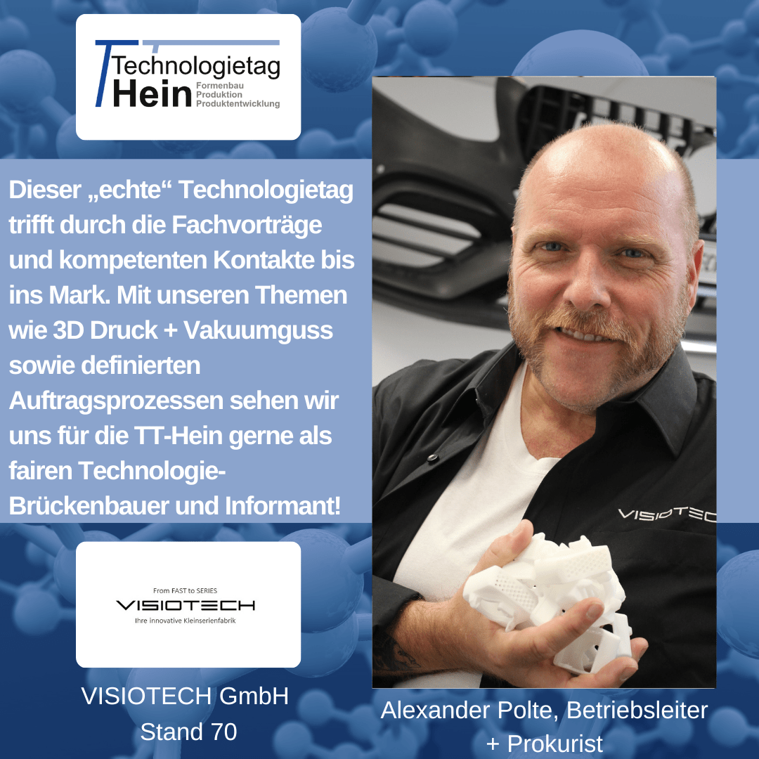 „Wie bleibt Deutschland in der kunststoffverarbeitenden Industrie und im Werkzeugbau führend? Welche Technologien müssen beherrscht werden, um wettbewerbsfähig zu bleiben? Der Technologietag Hein ist die Plattform, um diese Fragen zu beantworten. Im Zentrum stehen der Wissensaustausch und das gemeinsame Voranbringen technologischer Innovationen. Mit Fachvorträgen, Pitches und einer begleitenden Ausstellung präsentiert der Technologietag nicht nur den aktuellen Stand der Technik, sondern zeigt Wege auf, wie die Branche ihre Zukunft nachhaltig und wettbewerbsfähig gestalten kann.“